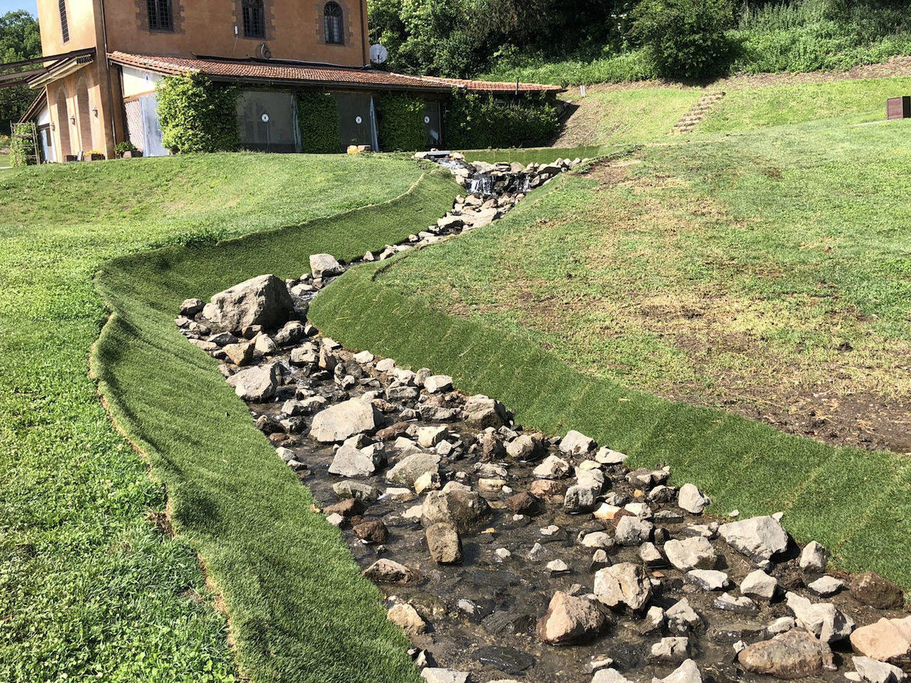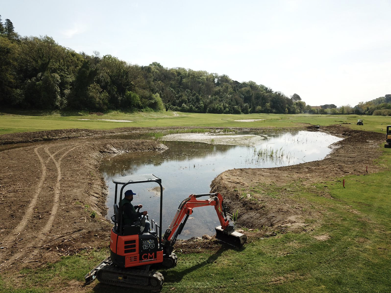Abbiamo realizzato una cascata tra il tee della 17 e il green della 18 che oltre ad avere un effetto sul gioco ed un ruolo estetico, ha la funzione di movimentare l’acqua del lago per prevenire la formazione di alghe.