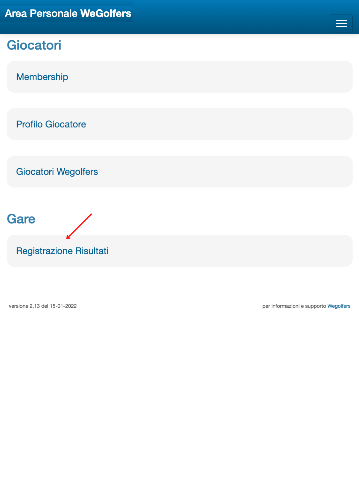 Attraverso l’Area Personale Wegolfers (a cui si accede sia da Wegolfers Club House sia dal menù principale di wegolfers.com) il giocatore può facilmente inserire i dati della gara attraverso la procedura REGISTRAZIONE RISULTATI.