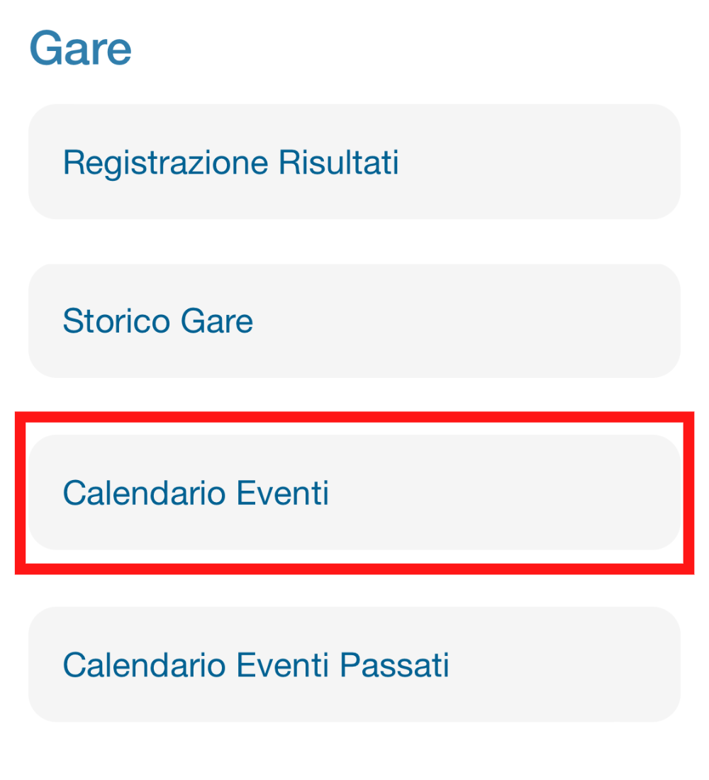 2. Scorrete il menù e cliccate su CALENDARIO EVENTI